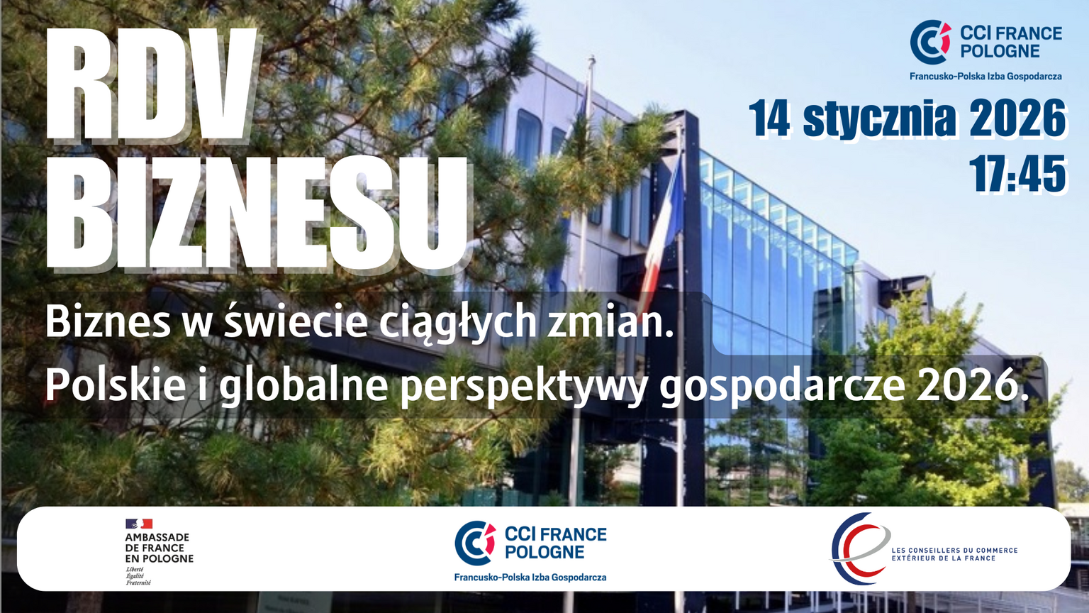 Zapraszamy wraz z Ambasadorem Francji w Polsce, JE Étienne de Poncins, oraz Olivier Degand, Prezesem CCE Polska na noworoczne Rendez-vous Biznesu. Spotkajmy się 14 stycznia o godz. 17.45 w Ambasadzie Francji w Polsce, aby wspólnie rozpocząć rok nowych wyzwań i możliwości!