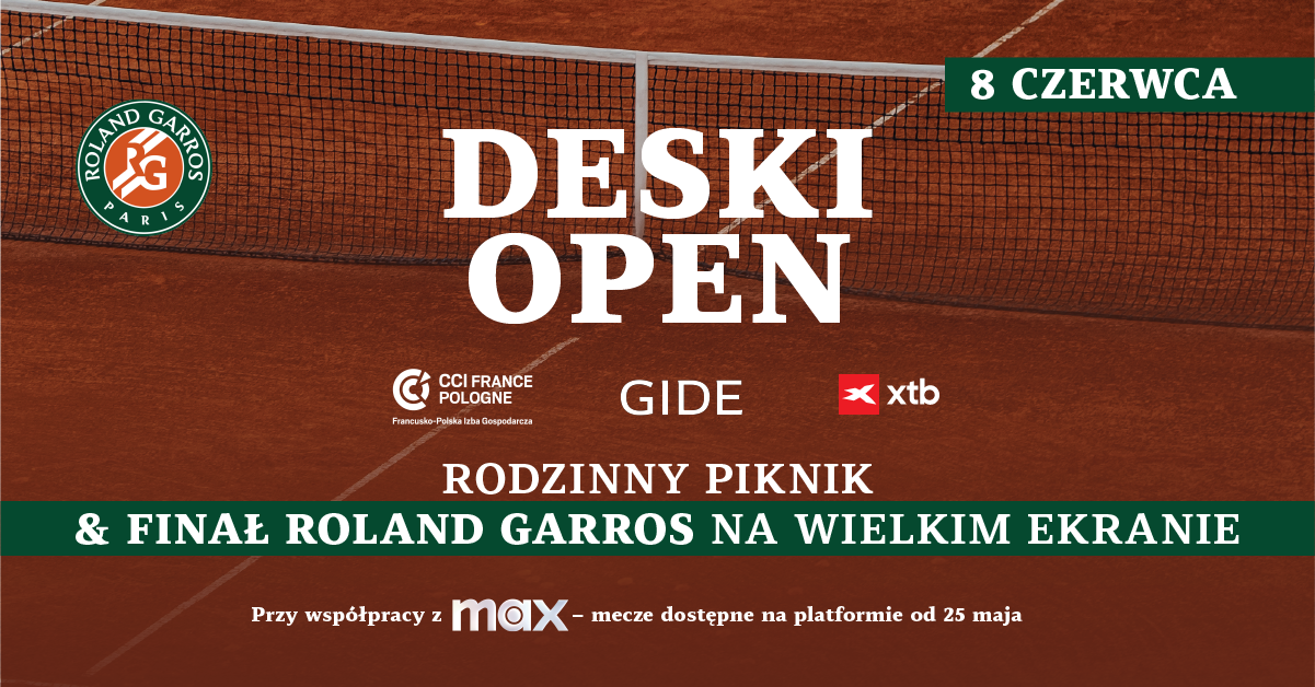 W imieniu organizatorów oraz kancelarii GIDE, która jest partnerem wydarzenia, z ogromną przyjemnością zapraszamy Państwa na DESKI OPEN – rodzinny piknik & finał Roland Garros na wielkim ekranie.