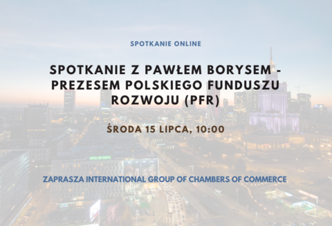 W imieniu Izb zrzeszonych w International Group of Chmbers of Commerce mamy przyjemność zaprosić Państwa na spotkanie z Panem Pawłem Borysem - Prezesem Polskiego Funduszu Rozwoju (PFR).