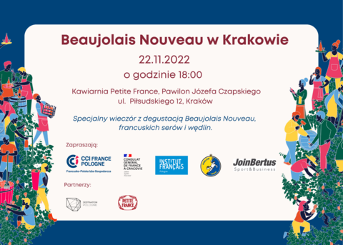 Zapraszamy do udziału w wyjątkowym święcie młodego wina Beaujolais Nouveau. Wraz z partnerami przygotujemy dla Was moc atrakcji w prawdziwie paryskim stylu. Wyjątkowe miejsce jakim jest Kawiarnia Petit France w Pawilonie Czapskiego w Krakowie, po raz kolejny stanie się miejscem spotkania przy kieliszku (kieliszkach?) tegorocznego Beaujolais Nouveau dla wszystkich Francuzów i sympatyków Francji w Krakowie.