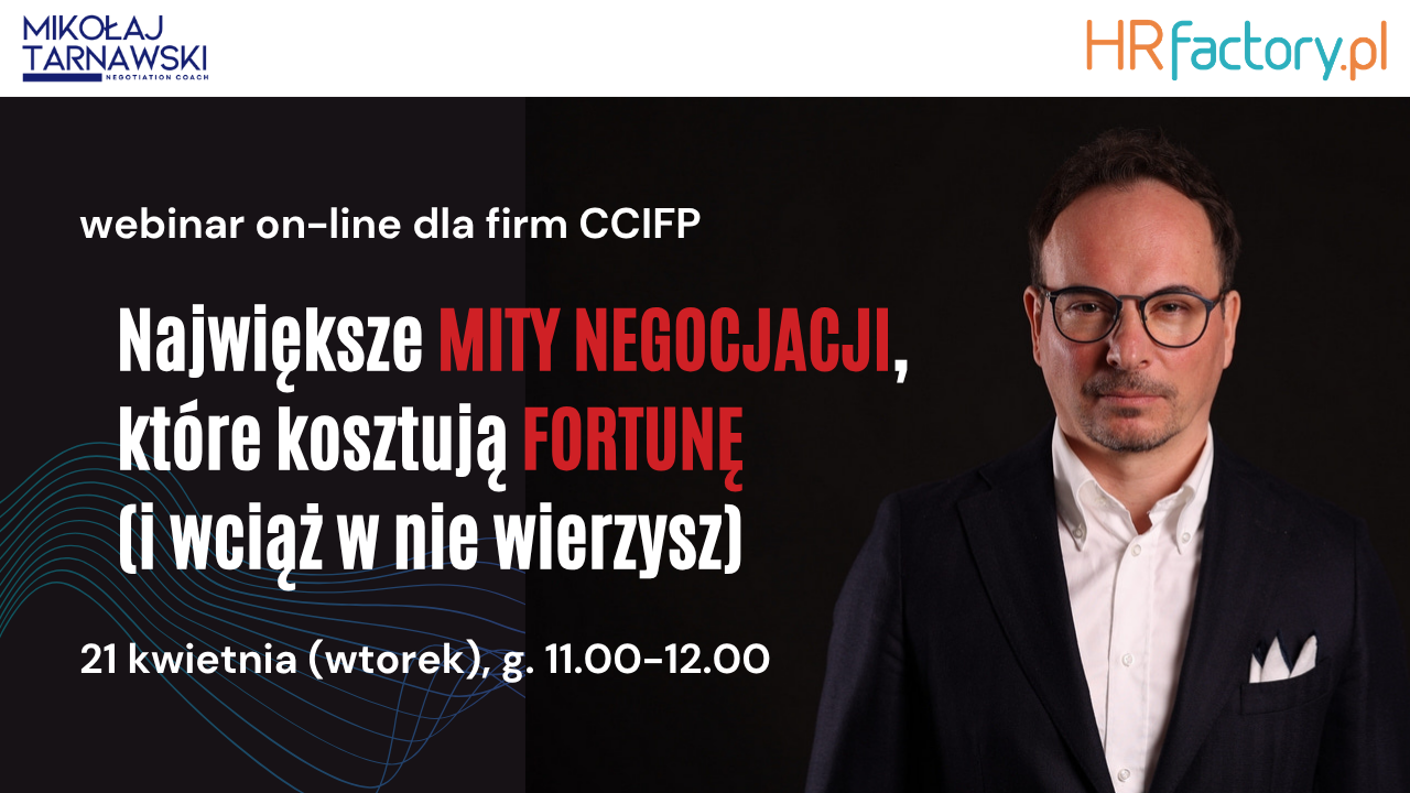 Webinar on-line dla firm CCIFP: Największe MITY NEGOCJACJI, które kosztują FORTUNĘ (i nadal w nie wierzysz)